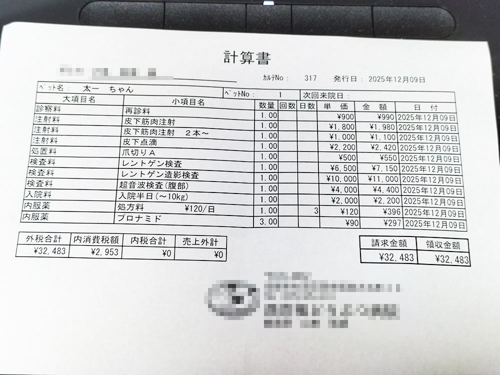 その後もえづく仕草を続けていたので翌日の通院を決定しました。